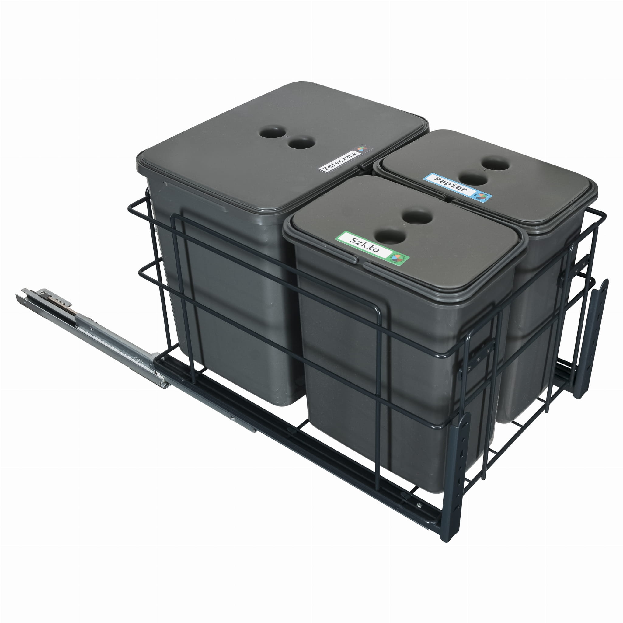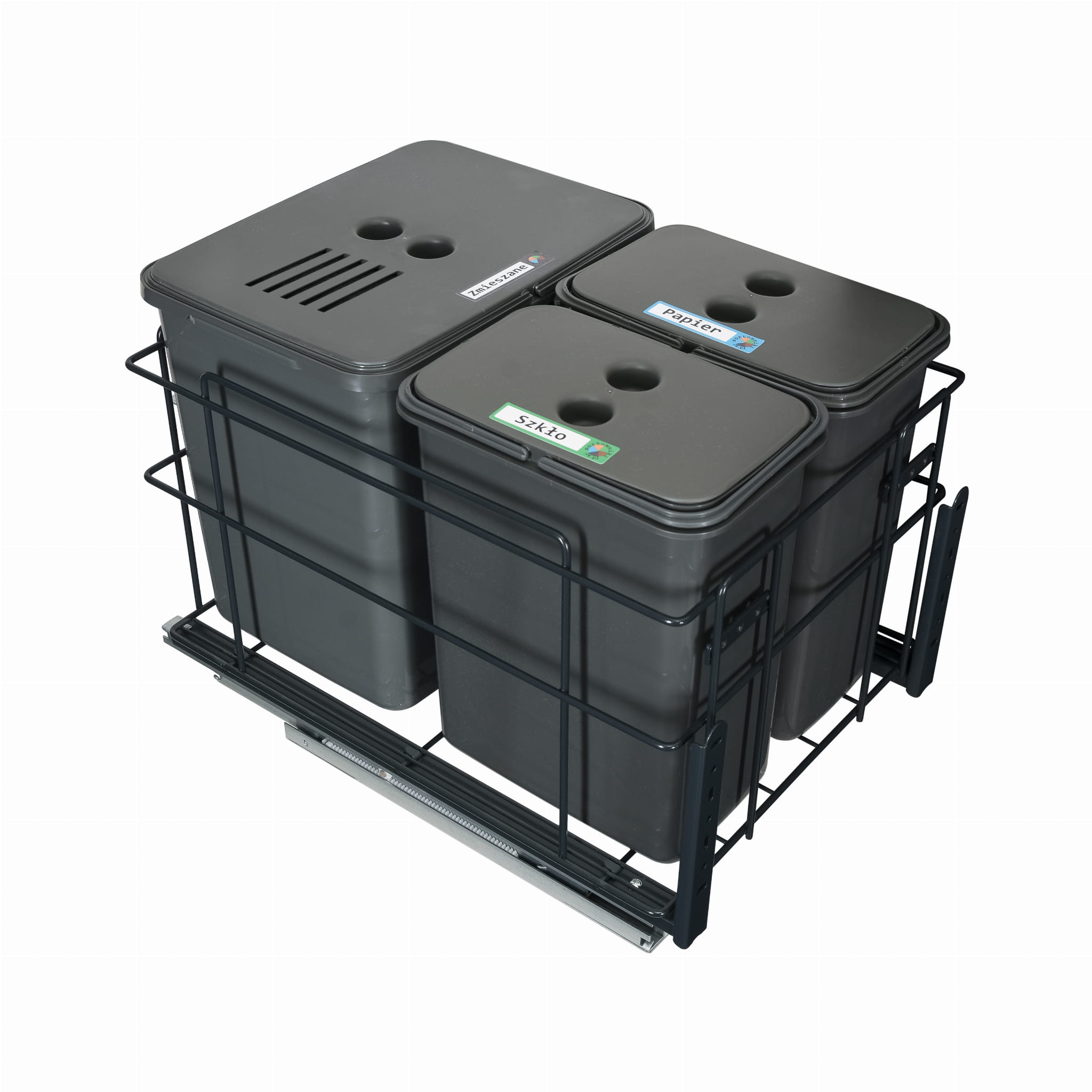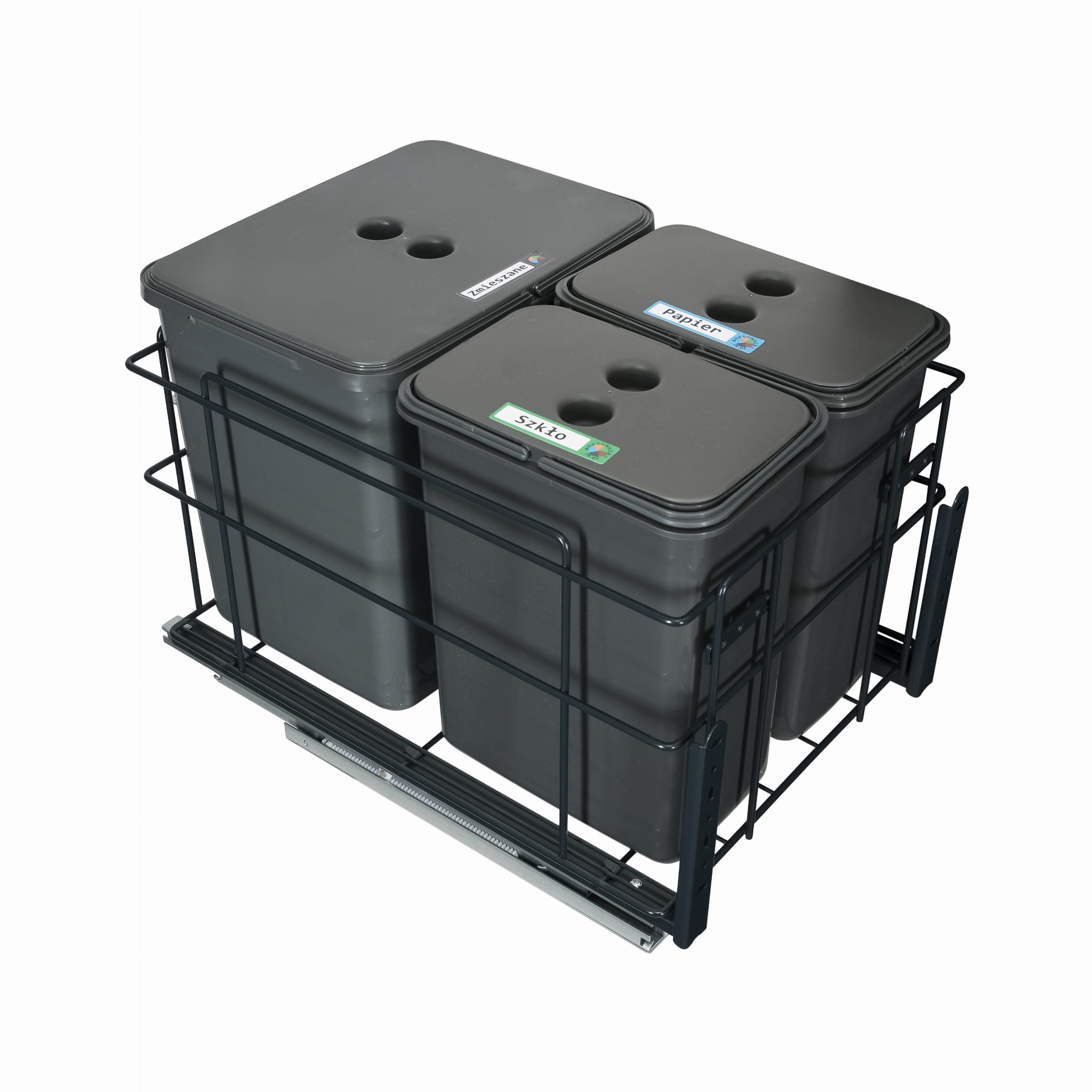 Sortownik śmieci SQUARE ECO do szafki 40 cm – cichy domyk – 3 kosze 1x16 l + 2x8 l – z mocowaniem frontu