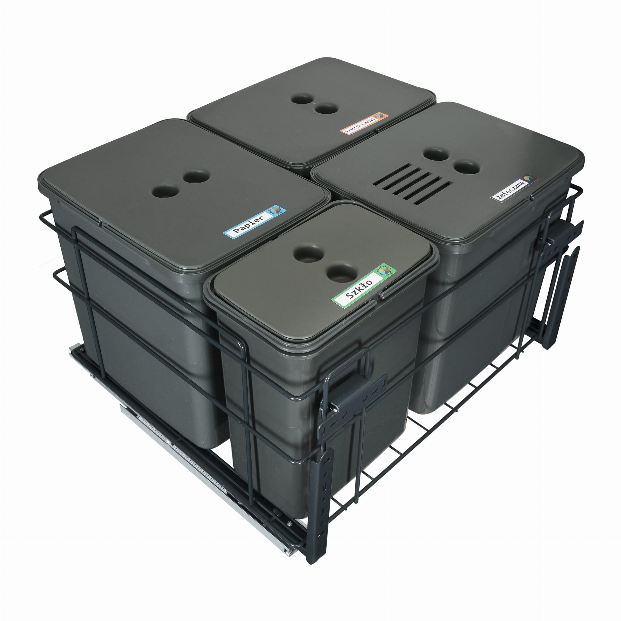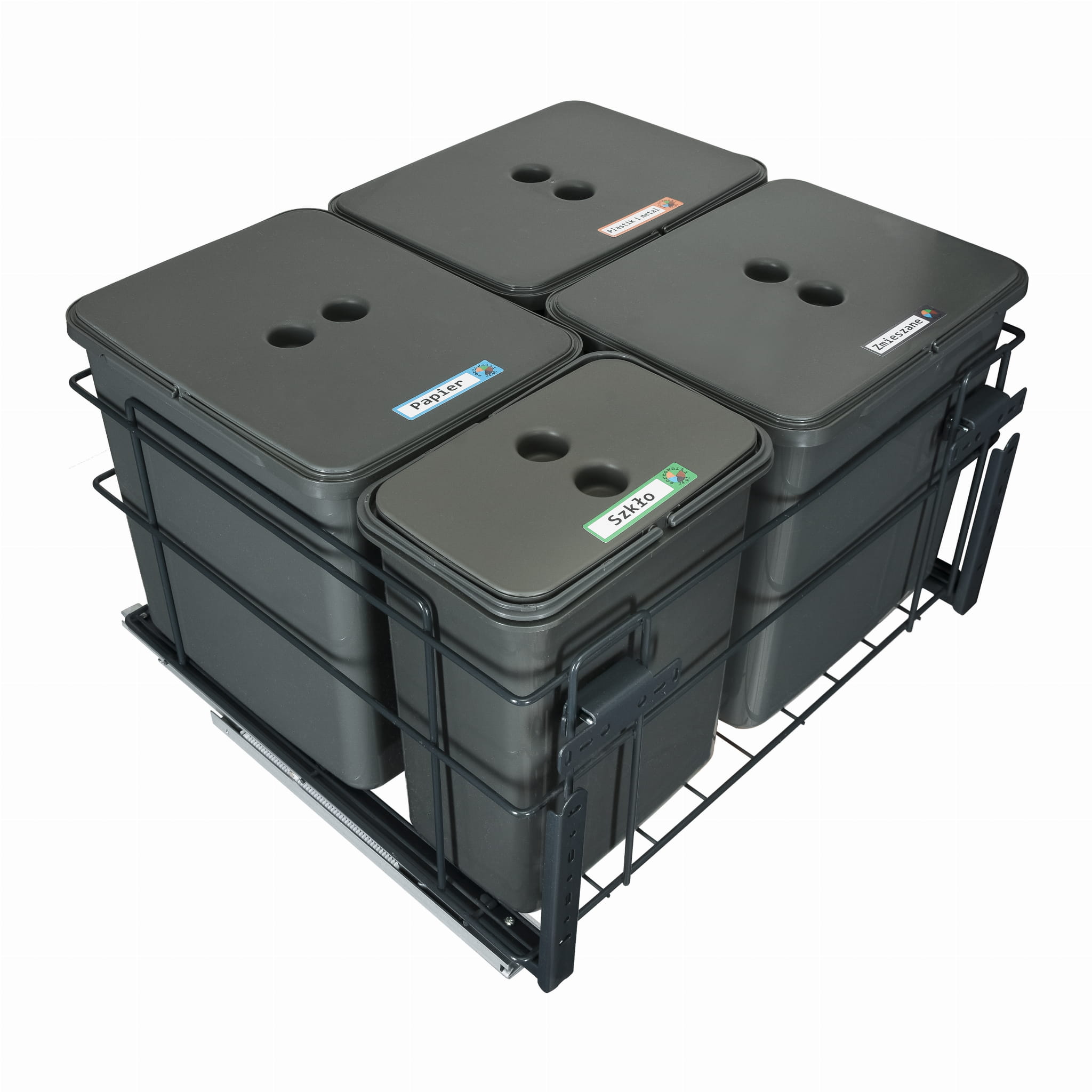 Sortownik śmieci SQUARE ECO do szafki 60 cm – cichy domyk – 4 kosze 3x16 l + 1x8 l – z mocowaniem frontu