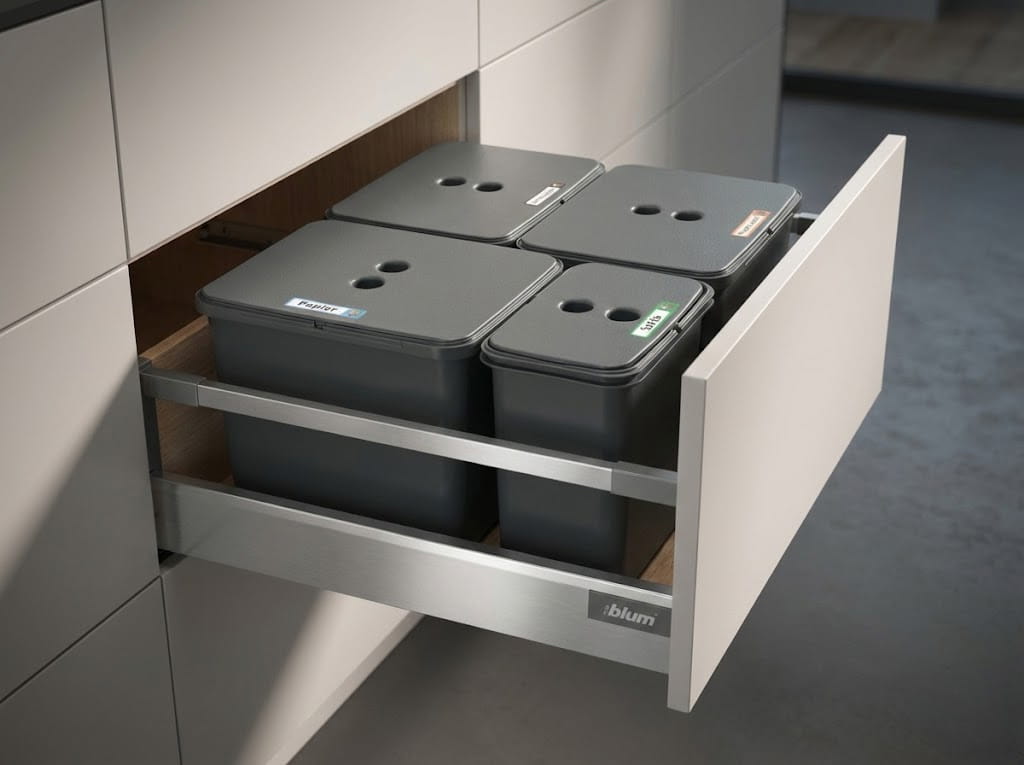 Zestaw koszy do sortowania FLEXI do szuflady BLUM w szafce 60/70 cm – 4 kosze 3x16 l + 1x8 l