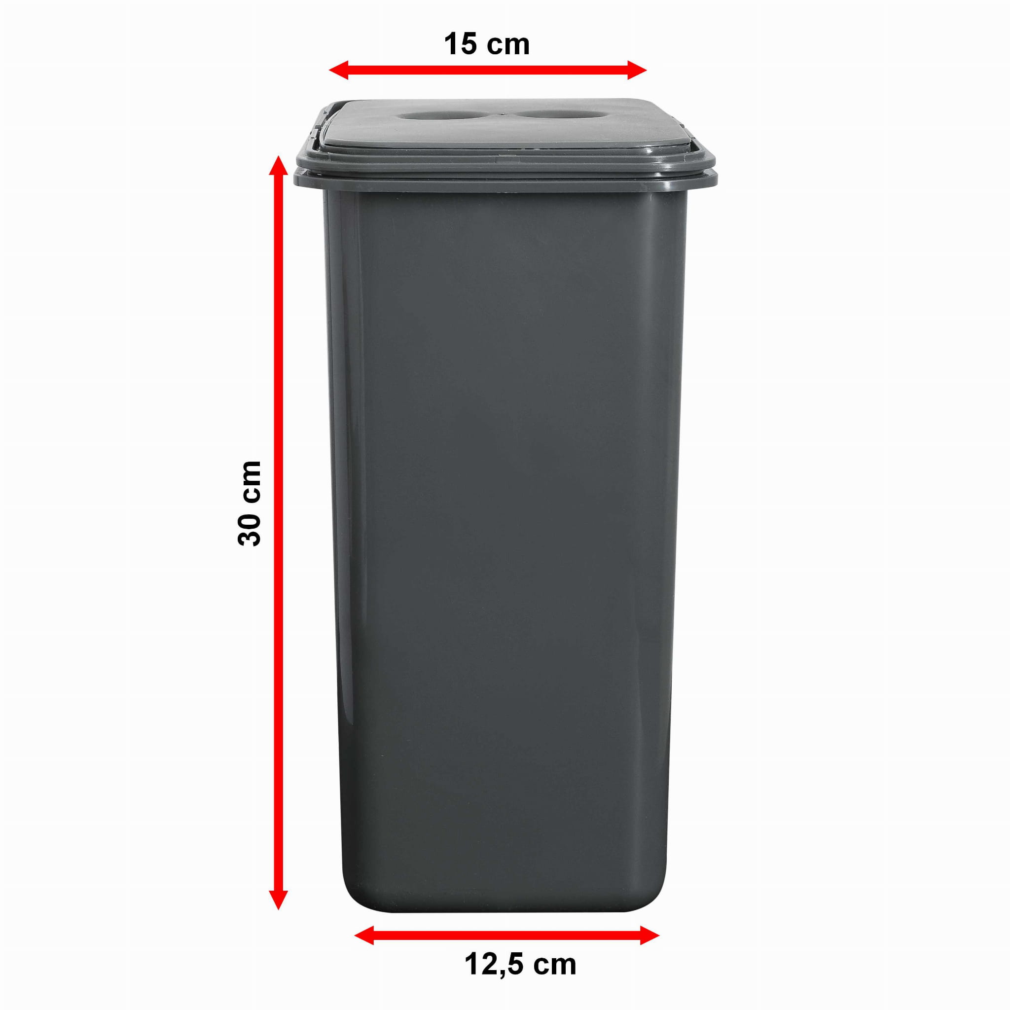 - kosz 8 l: 30 cm (wys.) × 23 cm (szer.) × 15 cm (gł.).