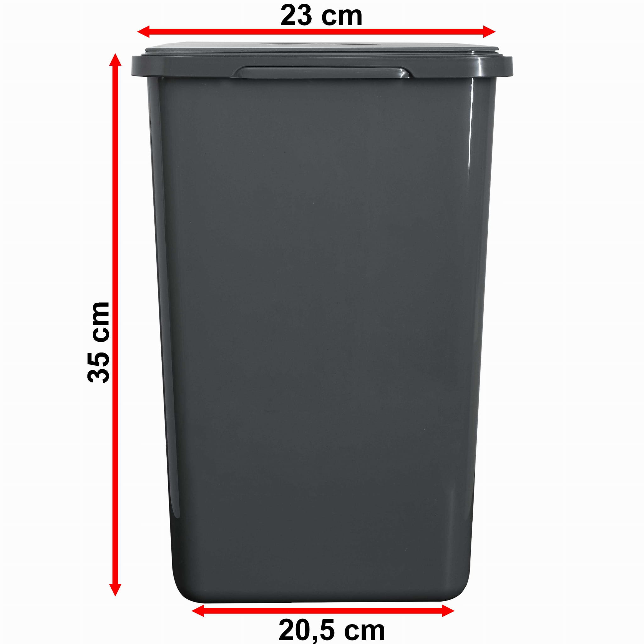 - kosz 20 l: 35 cm (wys.) × 23 cm (szer.) × 30 cm (gł.)